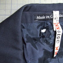 紳士背広の背中部分内側の裏地が大きく損傷し、貫通したように表地部分に損傷が発生しています。 組成表示ないので、顕微鏡観察から、表地は毛100%、裏地はキュプラなどのセルロース系化学繊維であると判定しました。 一見、薬品に […]